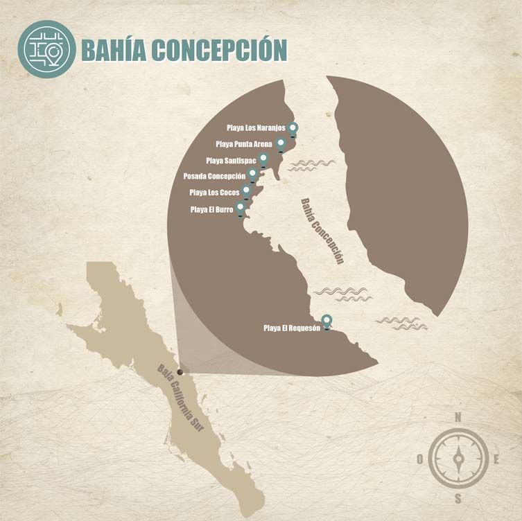 Bahía Concepción cuenta con una espectacular carretera escénica entre las comunidades de Loreto y Mulegé. Ofrece maravillosas vistas del paisaje desértico combinado con el mar. Playas como El Burro, Santispac, Los Cocos, El Requesón y Posada Concepción cuentan con características únicas que las hacen un atractivo natural imperdible.