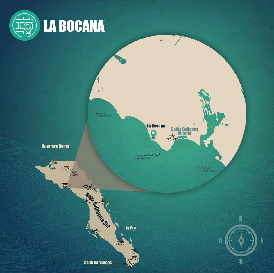 Localizada en el Municipio de Mulegé, La Bocana es una comunidad de pescadores altamente reconocida por los aficionados a la pesca deportiva, quienes en todo momento están listos para capturar jurel, pez espada, atún y dorado entre otras especies. Por otro lado, gracias a que hay manglares alrededor del estero, es un excelente destino para el avistamiento de aves.