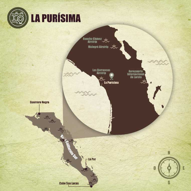 La Purísima se encuentra a 145 kilómetros al Norte de Ciudad Constitución, cabecera del Municipio de Comondú ubicado en el centro del estado de Baja California Sur. Los espectaculares paisajes, entre el riachuelo, vastos palmares y frondosos árboles, son encabezados por el famoso Cerro El Pilón.