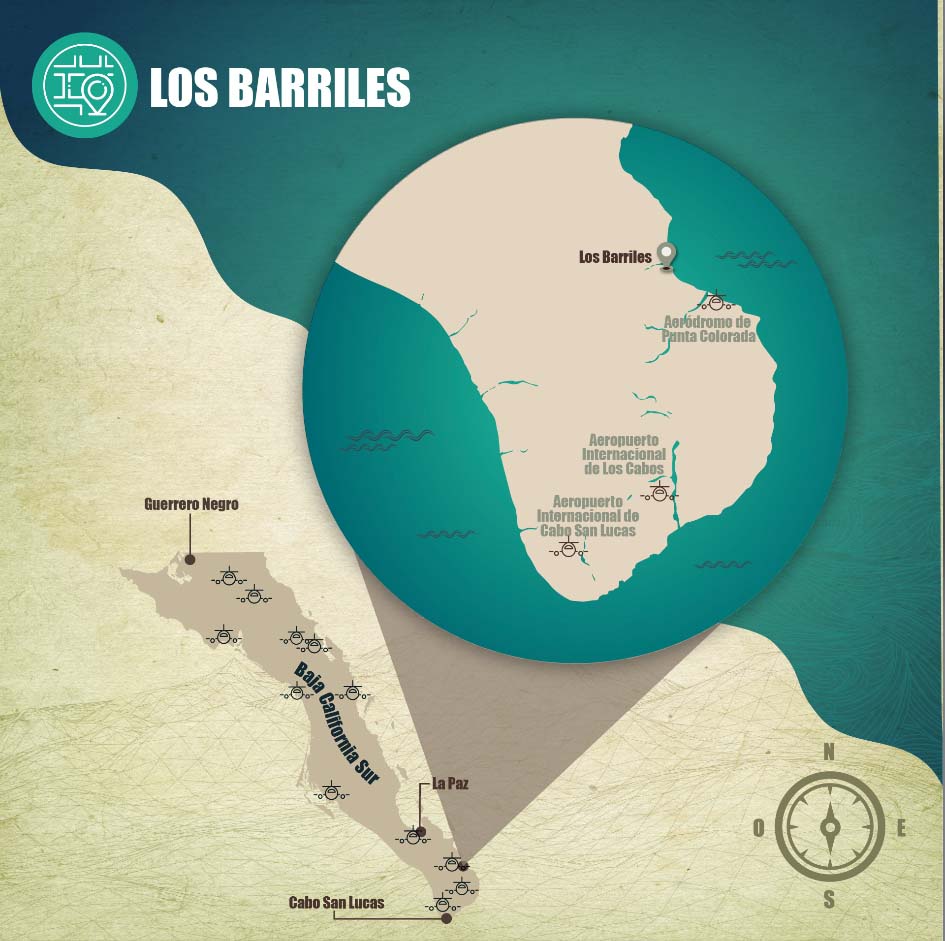 Ubicado a menos de una hora de Los Cabos sobre la Ruta 1 - a un costado del Golfo de California - Los Barriles es un lugar ideal para descansar y alejarse de las grandes multitudes de las grandes ciudades turísticas.