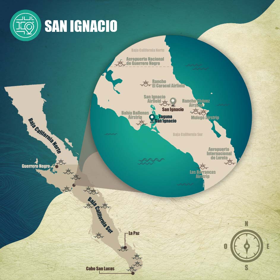 La laguna de San Ignacio está ubicada a 55 kilómetros de San Ignacio y es posible realizar actividades como kayak, buceo, campismo y glamping entre otros. Especialmente, en los meses de febrero y marzo, es un santuario para la ballena gris lo que permite su fácil avistamiento y es uno de los principales atractivos de este lugar.